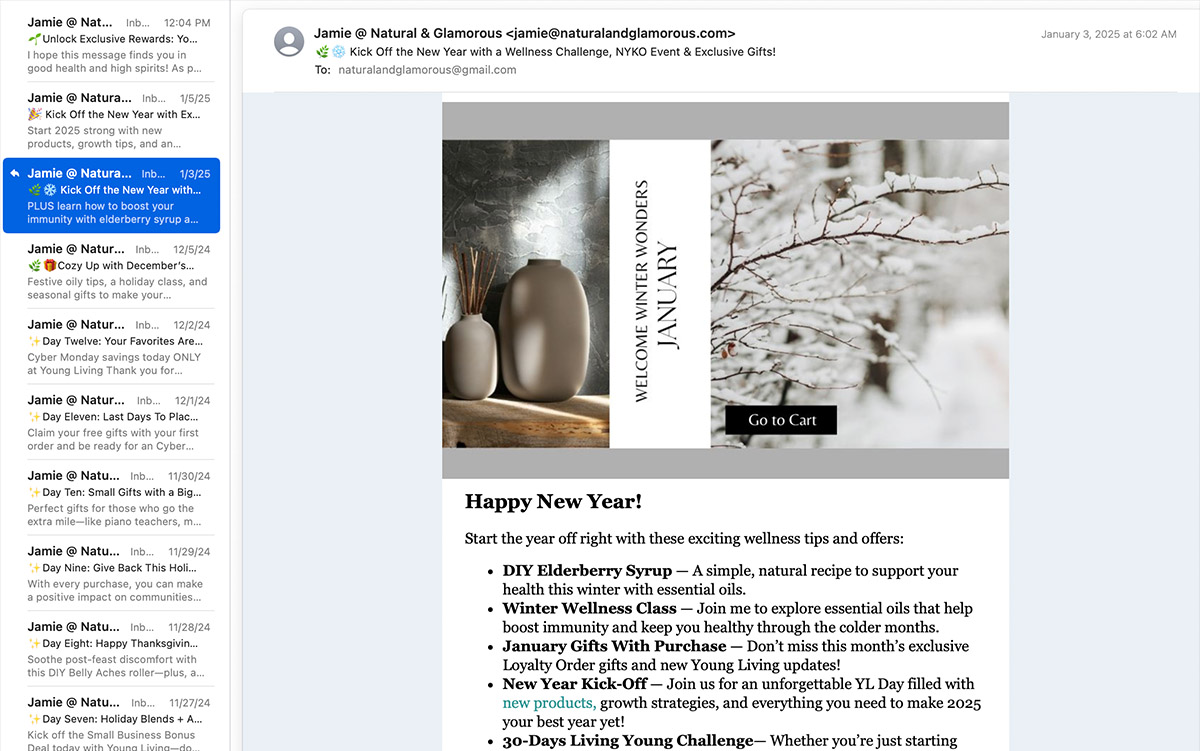 Provide your valued customers with access to 25 tailored, Young Living-specific, introductory and seasonal content templates. These workflow templates are expertly designed to offer insights into clean living, essential oils, and wellness strategies.